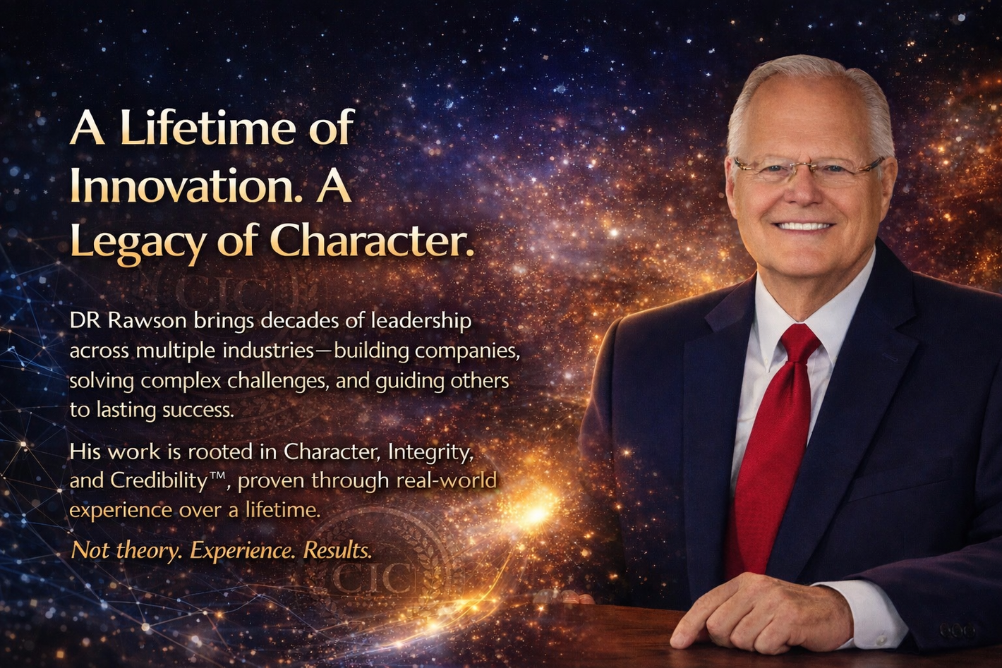 DR has spoken to groups as large as 10,000 on a variety of subjects. Today, he speaks of Leadership and Character, Integrity, and Credibility™ (CIC)